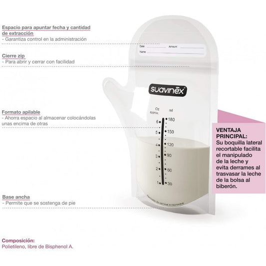 Bolsas para almacenamiento de leche materna 25 uds 180 ml de suavinex