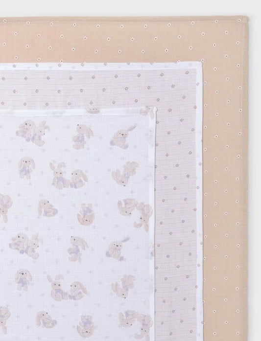 Pack 3 und Gasas Algodón Conejitos Estrellas de Interbaby