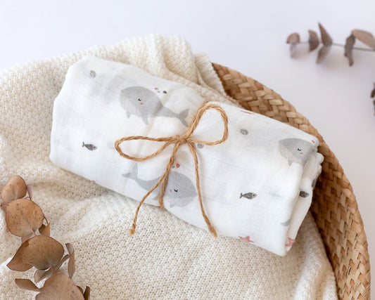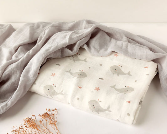 Set 2 Muselinas Ballenitas Bambú de kiokids