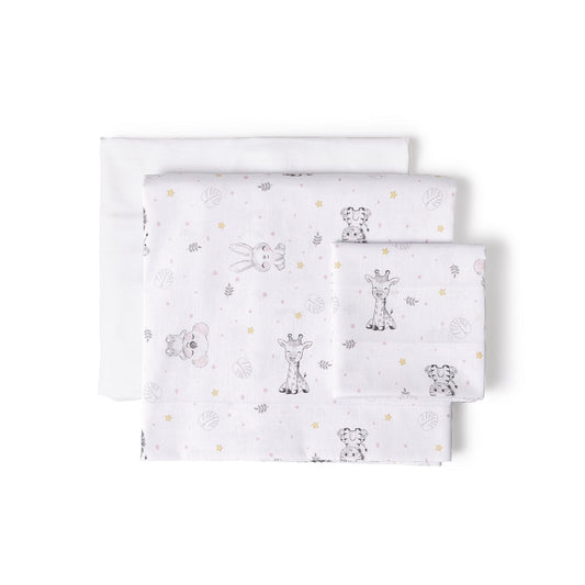 Tríptico Cuna 100% Algodón Jirafa Elefante + Chupetero de Interbaby