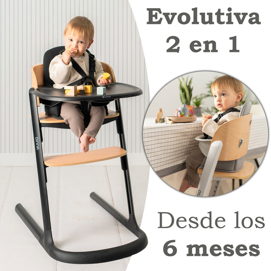 Trona evolutiva de madera 2 en 1 DINNA Silla infantil Evolutiva de Olmitos
