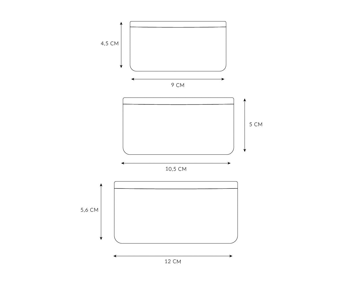 - Caja grande: 12 x 12 x 5,6 cm – Capacidad: 500 ml