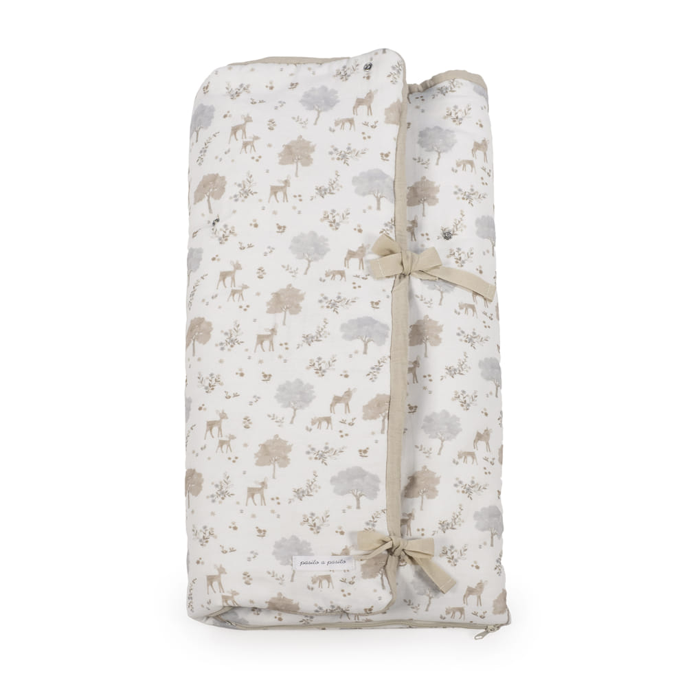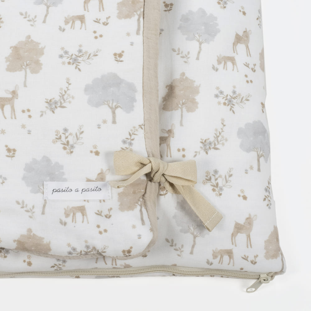 Saco arrullo o saco manta Nara de Pasito a pasito. Está fabricado con una suave muselina 100% algodón. Ideal para los primeros dias del bebé. Es perfecto para los primeros paseos en el capazo. Se convierte en una manta para la cuna. Practico cierre tipo sobre con lazos y cierre con cremallera en la parte inferior en los pies para que el bebé esté abrigado. Gran calidad y mucho estilo. Todas nuestras fundas están fabricadas conforme a las más exigentes normativas europeas, con materiales de gran calidad, libres de colorantes azoicos, ftalatos y sustancias nocivas para la salud. Tela de fácil limpieza, se recomienda lavar a máquina a 30º. Los productos para bebé de Pasito a Pasito cuentan con un diseño muy diferente a todas las demás. Sus colecciones se caracterizan por el trabajo al detallada, pensadas siempre desde un punto de vista práctico. Utilizan materiales de primera calidad para remarcar la elegancia y la armonía en cada una de sus piezas. Nuestros modelos son exclusivos y de estilo inconfundible, pensados en las madres actuales que gozan de buen gusto y que aprecian los detalles tanto como nosotros. Especificaciones: Materiales: 100% algodón. Universal.