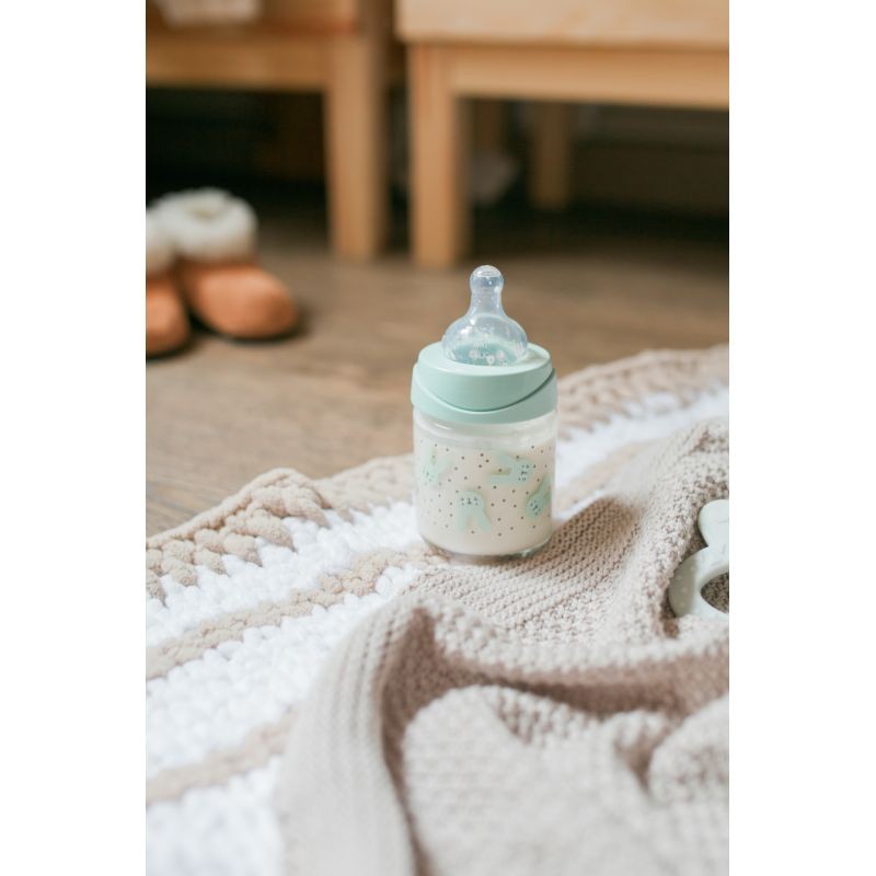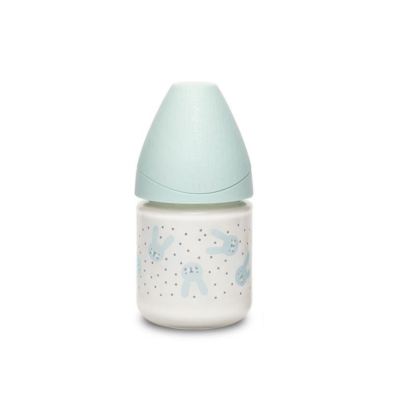 Biberón cristal tetina silicona 0M 120ml Conejo verde de Suavinex