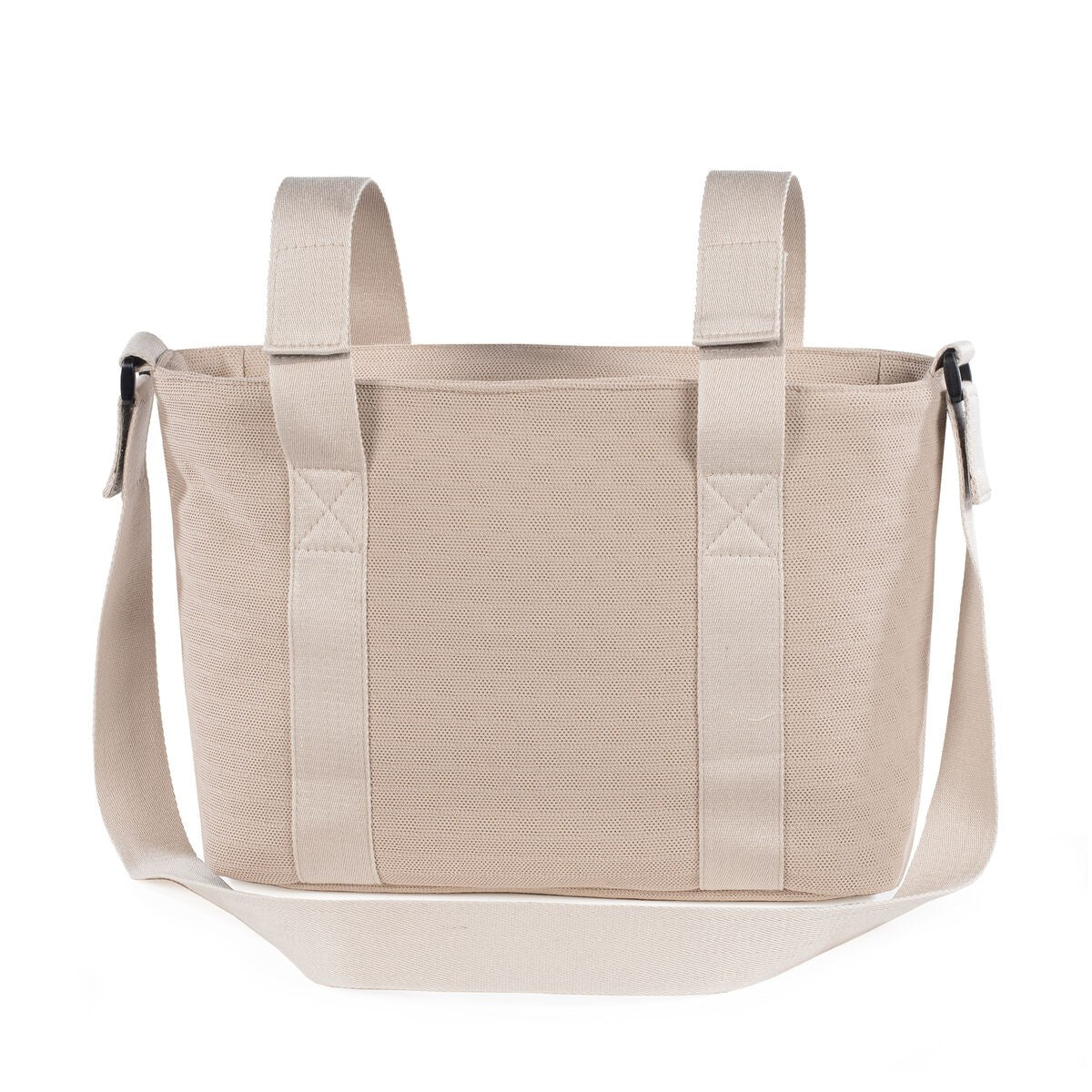 Su diseño moderno y casual lo hace ideal para el uso diario, complementando tus looks casuales o deportivos. Cuenta con asas cortas para fijarlo a cualquier modelo de silla de paseo y una asa larga para llevarlo al hombro.