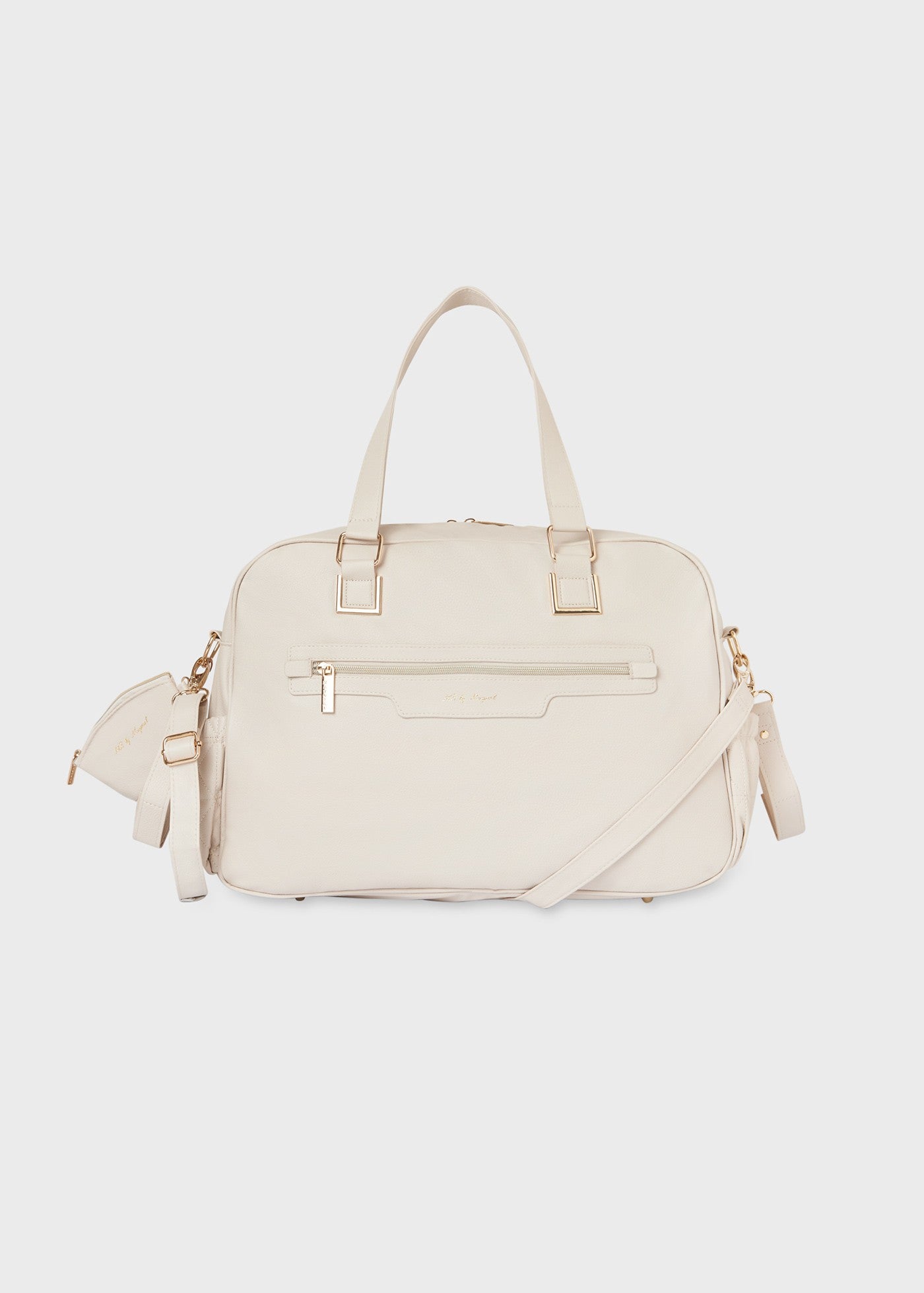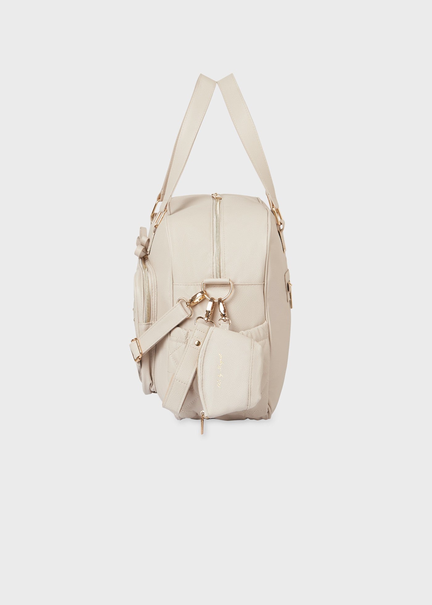 Cierre lateral con cremallera. Moderno exterior de polipiel. Incorpora asas de colgado desmontables, pudiendo engancharlo fácilmente a la sillita de tu bebé. Elementos de adorno: bordados, tachuelas. Pertenece a una línea de artículos combinables con la colección de Newborn. Este artículo tiene unas dimensiones de 30 x 45 x 15 cm.