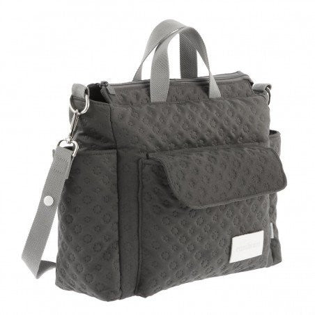 El Bolso Maternal Pack de Cambrass de gran amplitud con capacidad para guardar todo lo que necesitas para tu bebe. Su sistema de asas cortas lo hace útil tanto como bolso de mano o maletín así como de bandolera o incluso para el carro, ya que el asa larga dispone de clips para poder colgar del cochecito. Tanto el tejido exterior como el interior (resinado) con el que está confeccionado el bolso cuentan con un acabado impermeable que sumado a su base rígida aporta estabilidad evitando que pierda su forma tanto lleno como vacío e incluso después del lavado. Este bolso cuenta con prácticos bolsillos interiores y exteriores para una perfecta organización de los accesorios. El cierre del bolso es con cremallera YKK de larga duración.