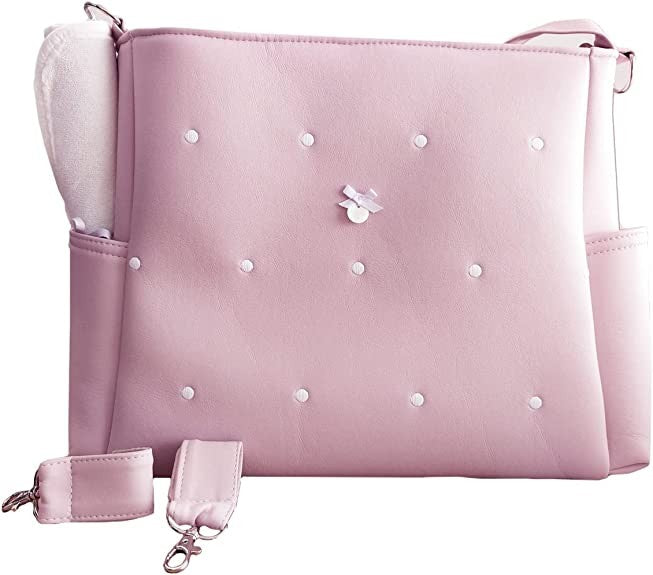 Amplio bolso que dispone de 2 bolsillos laterales y cierre superior de cremallera. Se puede acoplar a cualquier tipo de cochecito gracias a su ajuste de asa con velcro, que también permite poderlo llevar en el hombro gracias a otra tira más larga. Muy elegante, atemporal y práctico bolso para llevar a la hora del paseo todo lo necesario para ti y tu bebé, ya que dispone de separadores botelleros, 2 bolsillos separadores laterales interiores y 1 bolsillo con cierre de cremallera interior. Medidas aprox:31x43x14 cm (alto x ancho x fondo) Oeko-Tex Standard 100 certificada, lo que significa que todos los materiales son probados y libres de sustancias nocivas. Si te gusta puedes encontrar otros interesantes accesorios de la colección, en esta línea con las mismas altas calidades. Todo realizado y diseñado en España con los mejores materiales y los tejidos de la más alta calidad.