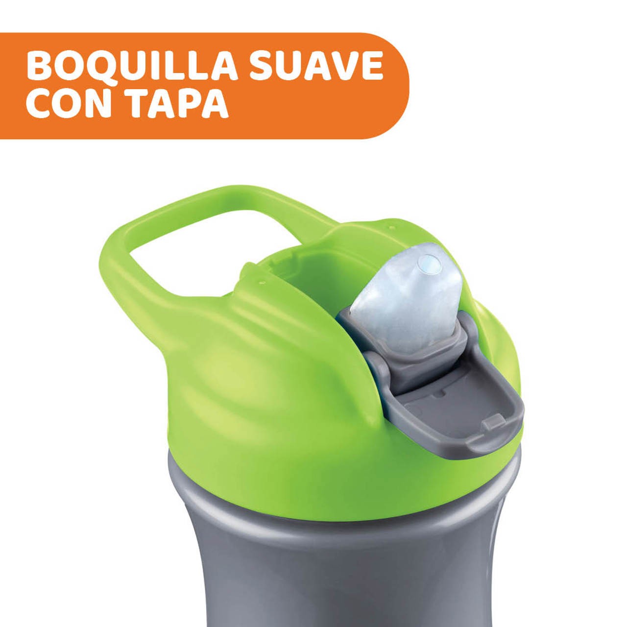 BOQUILLA CON APERTURA POP-UP: Posee una boquilla de silicona suave con tapa que aparece cuando se presiona, para que los niños y niñas puedan beber fácilmente, y cerrar cuando acaban. ¡Además podrán beber como si fuese una pajita!