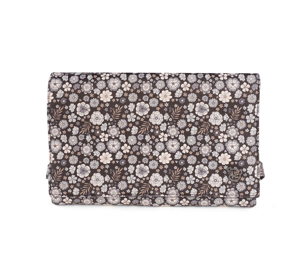 Un patrón especialmente ideado para utilizarlo cuando necesites cambiar a tu bebé. Está elaborado en delicada y resistente polipiel y es plegable para facilitar su traslado a todos lados. Es un diseño tan elegante como funcional, porque se presenta en formato plegado para hacerlo portátil. Cuenta con cintas de agarre de cierre para mantener el cambiador cerrado y así se reduce su espacio para llevarlo dentro de la bolsa de maternidad
