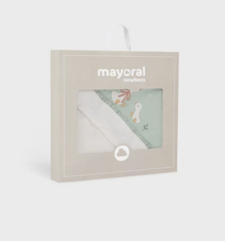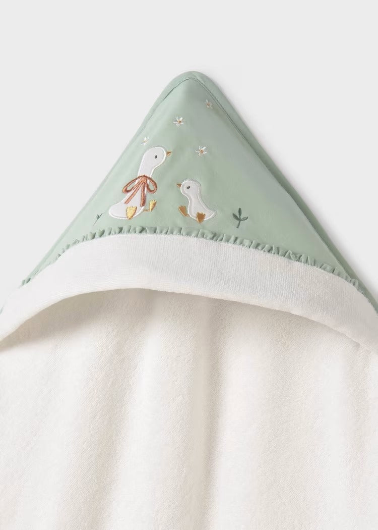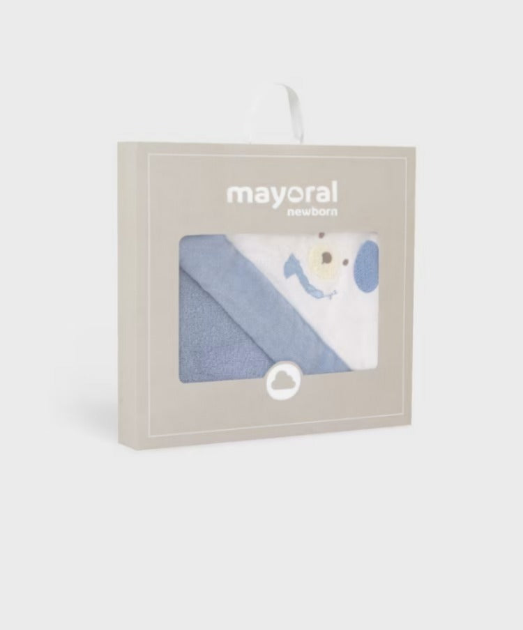 Esta toalla con capa de animales de Mayoral (9526) es perfecta para la hora del baño. Con su suave y tierno diseño, mantendrá a tu bebé caliente y seco, mientras lo envuelves en una toalla con capucha llena de diversión. ¡Ideal para los amantes de los animales y los baños relajantes!