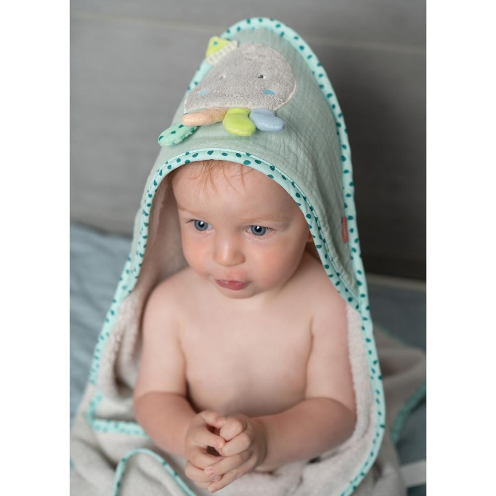 Un secado placentero después de un largo baño, una visita a la piscina o un baño en la playa: la toalla de baño absorbente con capucha y linda aplicación de pulpo de la colección Children of the Sea envuelve al bebé y lo protege del frío y las corrientes de aire. La toalla esponjosa proporciona un agradable momento de abrazos. Los más pequeños se pueden envolver de forma segura: la linda capucha con pulpo calienta la cabeza del bebé. El uso diario y el lavado frecuente no pueden dañar a la linda criatura marina ni al suave poncho de baño.