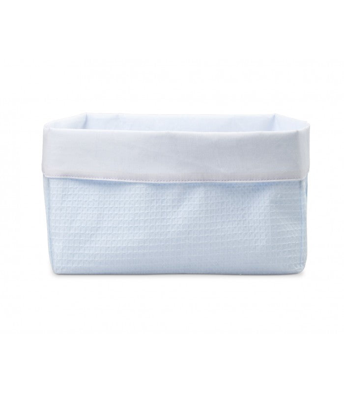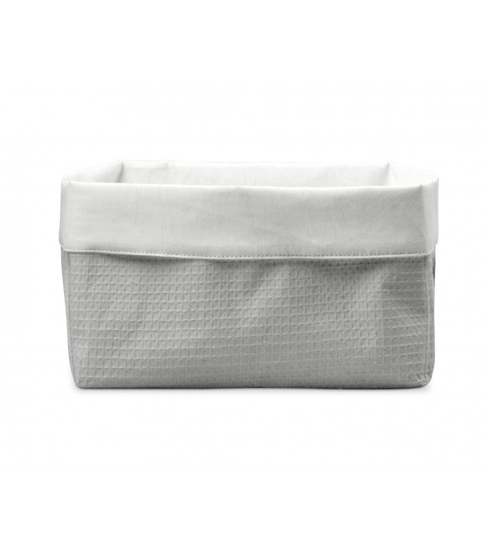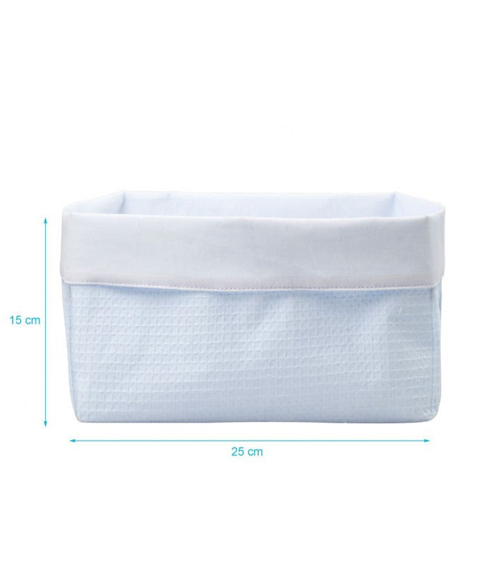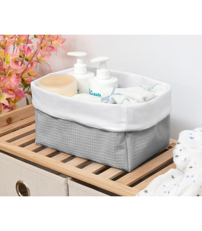 Este práctico cesto para pequeño almacenamiento es ideal para tener en el baño o junto al cambiador y tener siempre recogidos los productos de aseo, los pañales... Sus costuras laterales permiten que mantenga la forma rectangular, sin embargo, al ser completamente textl, es adaptable al contenido.