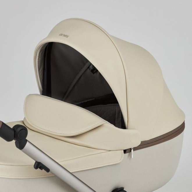 Para mantener a tu pequeño cómodo y fresco, el cochecito tiene un sofisticado sistema de respiración que proporciona ventilación en todos los lugares adecuados: desde la capota y la parte inferior del capazo hasta el reposapiés y la capota de la silla de paseo.