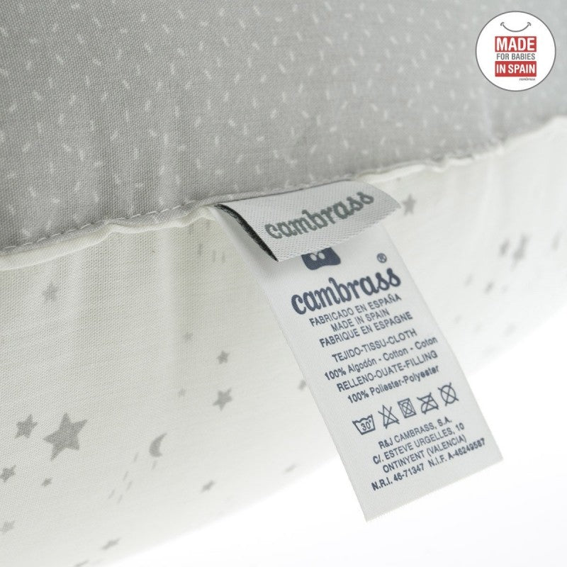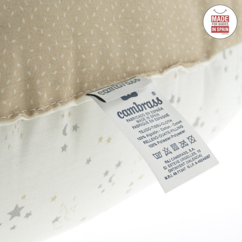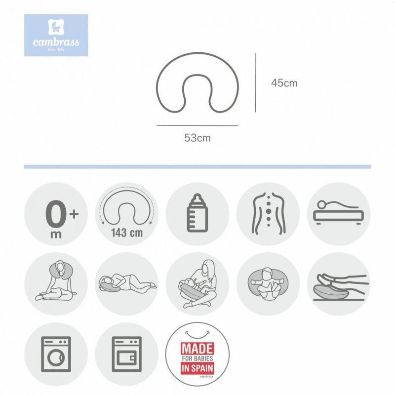 El cojín de lactancia pequeño de Cambrass es muy práctico durante el período de lactancia, tanto si la lactancia es materna como si es de biberón. Durante la lactancia sirve tanto para el bebé como para la madre (o el adulto). En este caso favorece que el bebé adquiera una posición más cómoda al descansar sus hombros y cabeza sobre el cojín, evitando así que le pueda afectar cualquier movimiento del adulto. Al mismo tiempo proporciona al adulto un apoyo extra para los brazos evitando tensiones en el codo, espalda y muñeca. Además de su uso para la lactancia también está indicado para el adulto que al colocarlo alrededor del cuello relaja los músculos y las cervicales obteniendo una sensación muy confortable.