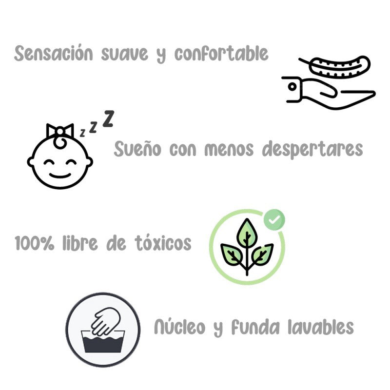 Colchón de cuna con tratamientos Antibacterianos e Hipoalergénicos.