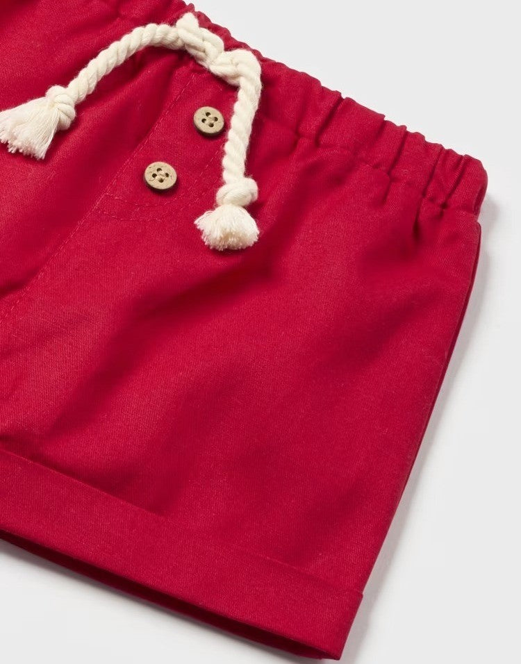 Pantalón de tipo bermuda para recién nacido. Cinturilla elástica. Detalle de bajo con vuelta. Bolsillo trasero funcional.
