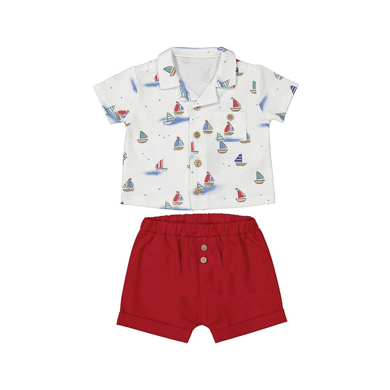Conjunto de camisa y bermudas coordinadas para recién nacido.