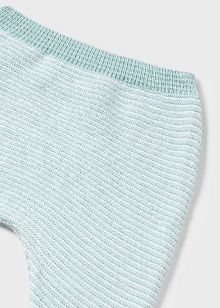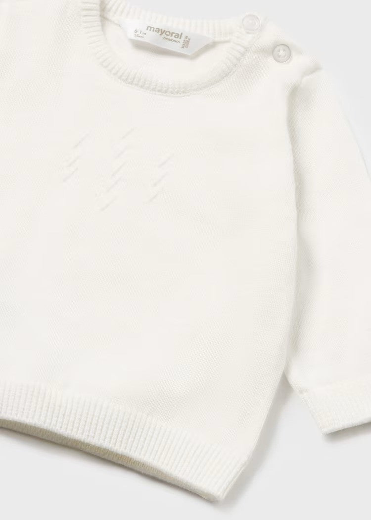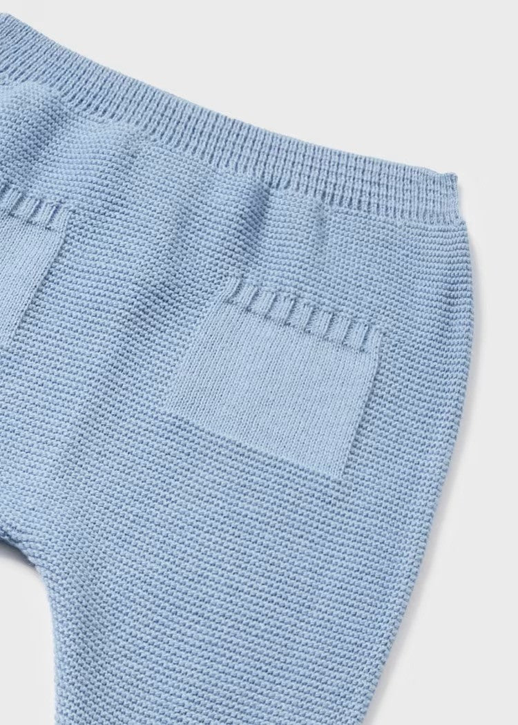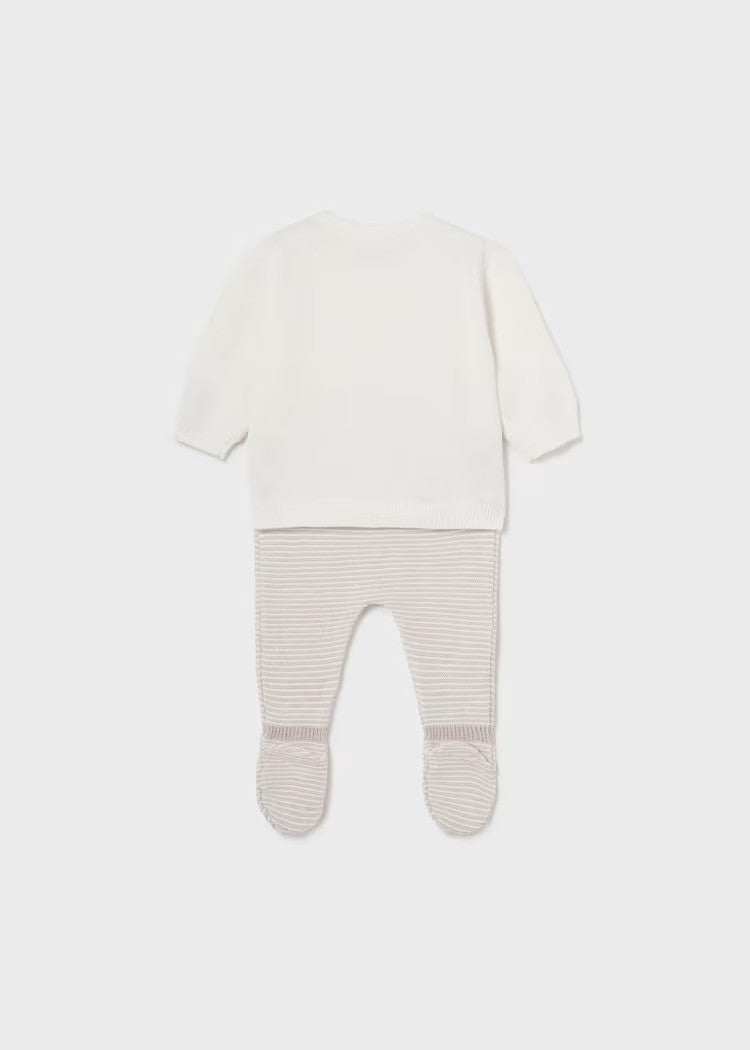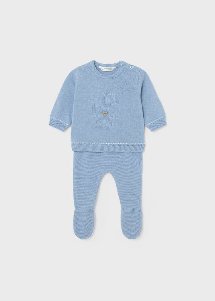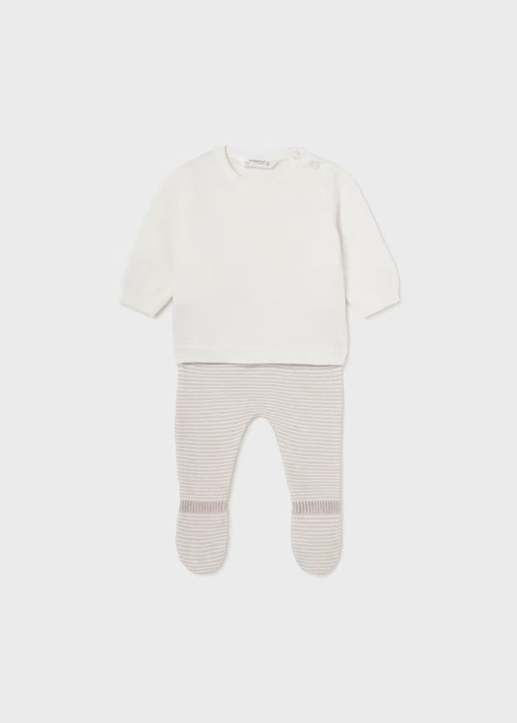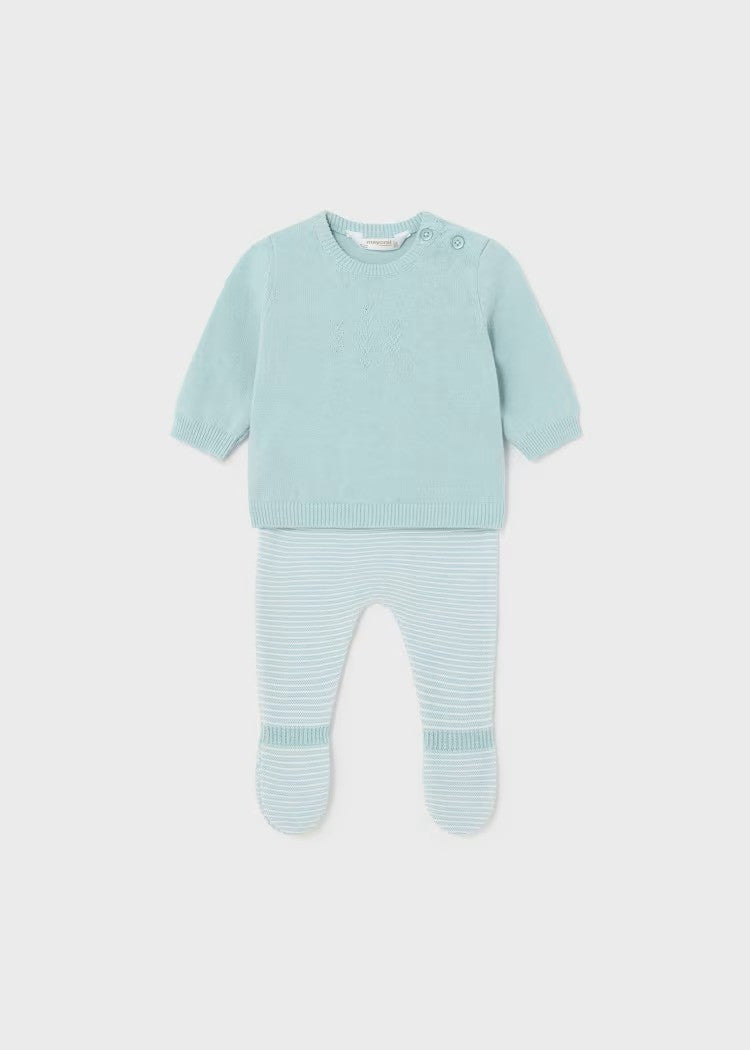 Conjunto tricot de dos piezas para recién nacido compuesto por jersey y polaina a juego.