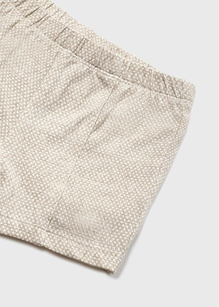 Pantalón de tipo bermuda para recién nacido. Goma elástica en la cintura para un mejor ajuste. Bolsillo trasero funcional.