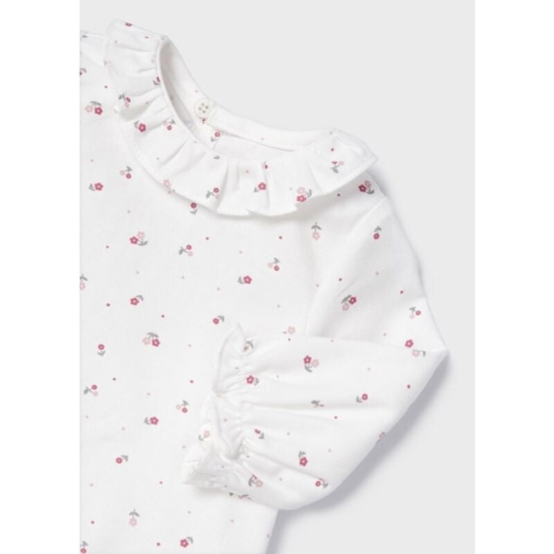 Blusa de manga larga para recién nacido. Pequeña abertura en la espalda con cierre de botón para facilitar la puesta de la prenda.