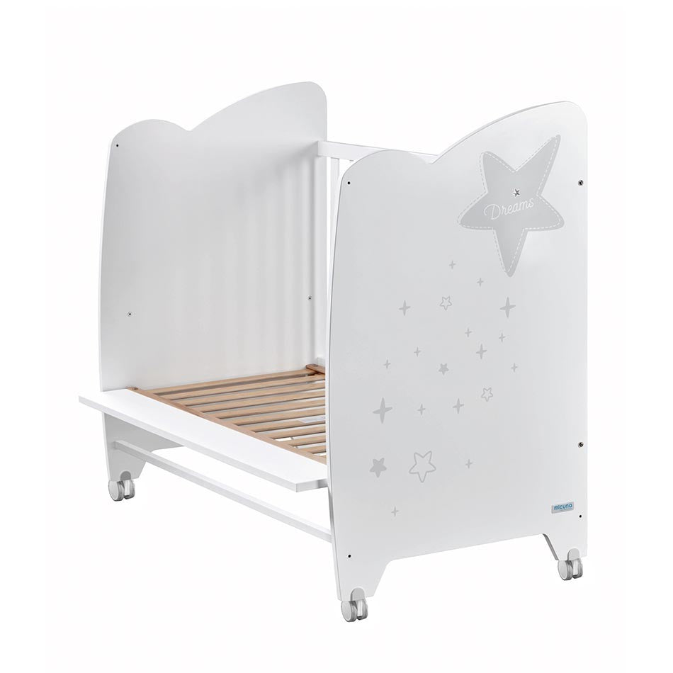 Opcionalmente se le pueden añadir varios sistemas de micuna como el sistema Pendulum System que permite el balanceo de la cuna mediante un cajón balancín o el Relax System, un práctico sistema mediante el cual podrás colocar el colchón de la cuna en dos posiciones diferentes: en posición horizontal y con una inclinación de 7º a 10º, sin necesidad se sacar al bebé de la cuna ni despertarlo. Por último, el opcional de barrera MICUSSORI , el complemento perfecto para cuando tu bebé aprenda a bajar y subir solito de la cuna.