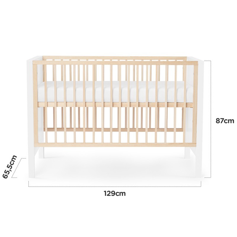 La cuna de madera MIA puede acompañar a tu bebé desde el nacimiento hasta los 120 cm. Esto es posible gracias a la colocación de la base del colchón en 3 niveles y una barandilla extraíble que convierte la cuna en un sofá para un niño mayor. Pintado con materiales al agua, ecológicas, seguras y no tóxicas para los niños.