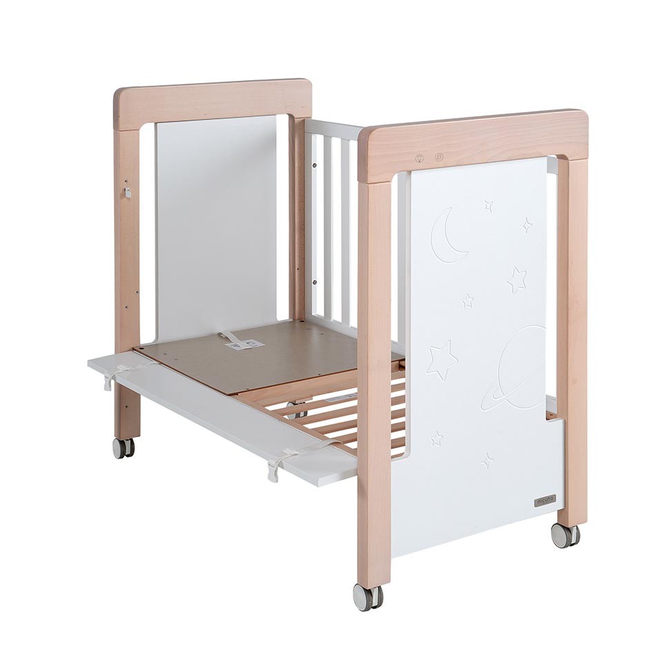 Nuestra cuna está fabricada en madera de haya lacada en blanco con pinturas al agua y barnices no tóxicos. Todas nuestras maderas provienen de bosques gestionados de forma sostenible y desarrollamos nuestros diseños, producción y distribución bajo las premisas del eco-diseño. Tenemos un gran compromiso con la fabricación ecológica.