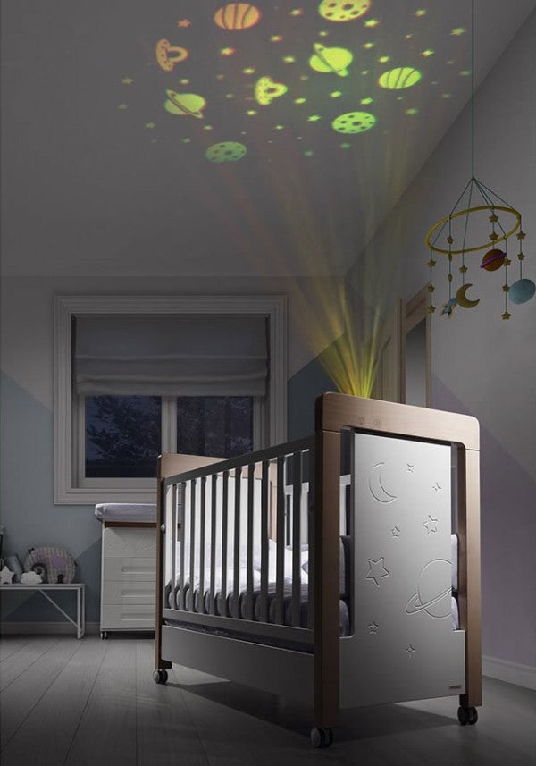 Magic Mum facilitará el sueño de tu bebé proyectando en el techo de la habitación una bonita galaxia de relajantes colores o haciendo sonar una dulce nana que lo hará dormir plácidamente.