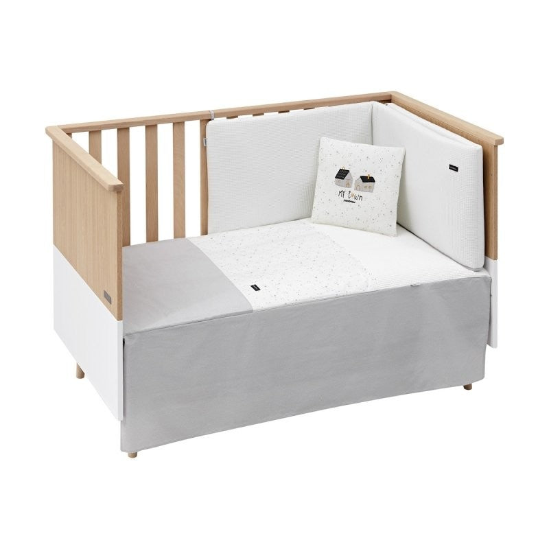 - Juego de 2 piezas para vestir la cuna, compuesto por colcha más protector.