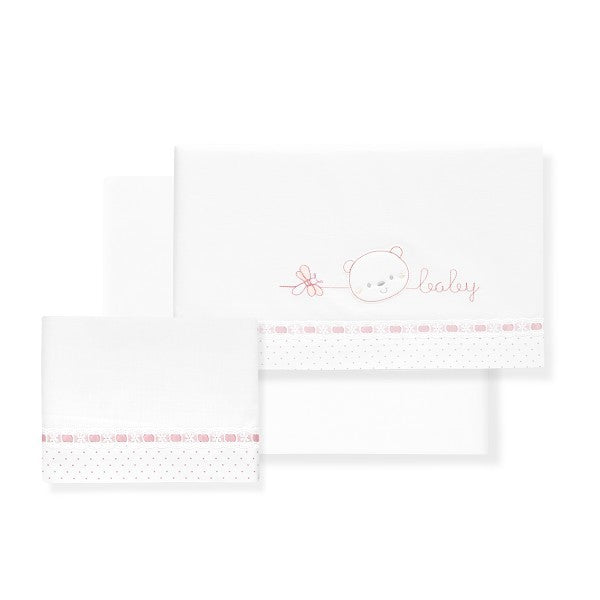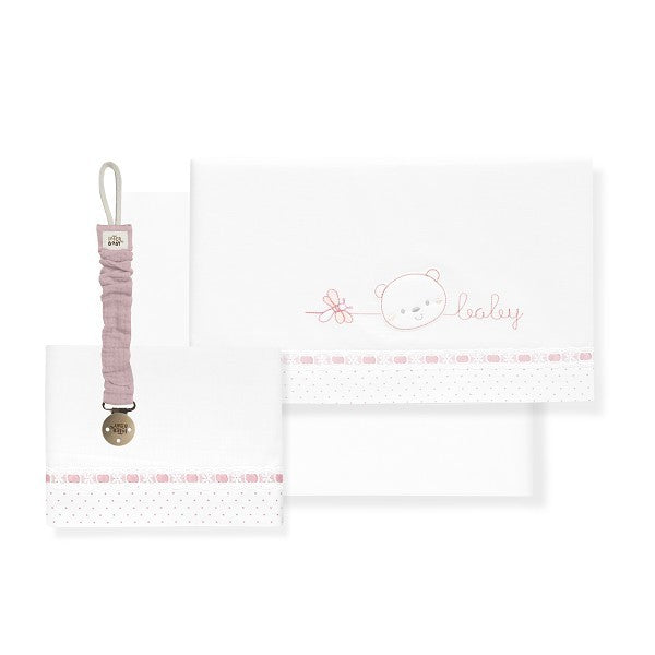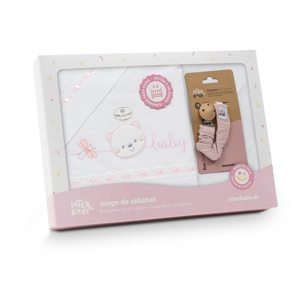 Juego de Sábanas para Cuna + Chupete Modelo Oso Corazon Bebe de la marca Interbaby
