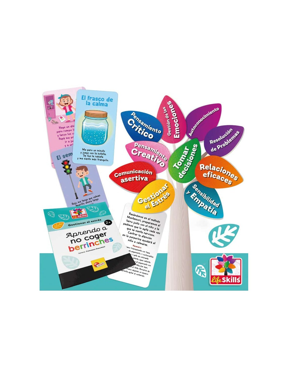 En este caso, el juguete psicoeducativo Aprendo a no coger berrinches sirve para desarrollar la habilidad de gestión del estrés, identificada por la OMS.