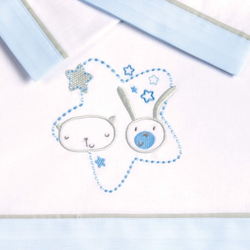 Juego de sábanas para bebé confeccionado en suave algodón. Proporciona un agradable tacto y protección para el descanso de tu bebé evitando enfriamientos. Con este juego de sábanas tendrás tu cuna completamente vestida, además con su diseño exclusivo la cuna de tu bebé estará a la última.