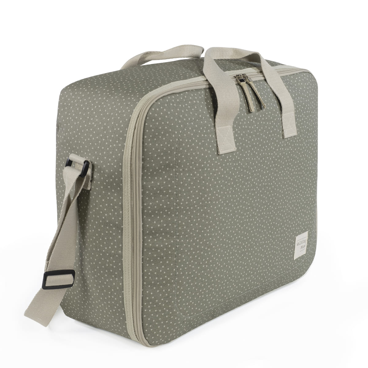 La maleta de bebé Poppy Musgo de topitos es un bolso especialmente diseñado para el momento más importante del embarazo, que es la llegada de tu bebé, momento en el que hay un montón de cosas que preparar. Por esto necesitas un espacio cómodo para transportar todo lo necesario para ti, el padre y el niño. Esta maleta de bebé es el modelo perfecto para cubrir todo lo que no puede faltar en este día tan especial. Es cómoda, ligera y manejable con dimensiones rectangulares y apertura práctica para tener todas tus necesidades cubiertas. Cuenta con cierre seguro de cremallera en ambas direcciones que facilitan su apertura, incluye una correa larga para llevar colgada en el hombro y asas cortas de mano. Además en el compartimiento interior tiene un forro a juego con gomas para contener la ropa y mantener todo en su lugar. Gran calidad y mucho estilo. Fabricado en un material resistente y de fácil limpieza a mano o a máquina a 30 °C. Walking Mum protege a tu bebé utilizando los mejores tejidos, libres de colorantes azoicos y sustancias nocivas para la salud. Nuestra colección Walking Mum guarda toda la calidad de la marca Pasito a Pasito pero con un particular sello de estilo urbano y moderno que no pasa desapercibido, para vestir diferente los paseos con tu bebé. Las bolsas de maternidad de esta línea son más sport y prácticas, especialmente pensadas en mamás y papás modernos que aprecian los diseños más actuales y en tendencia sin dejar de lado la calidad y la funcionalidad de los accesorios que complementan y hacen más cómodos todos los paseos con sus bebés. Especificaciones: Materiales: 100 % algodón plastificado. Medidas: 49X37X17 cm.