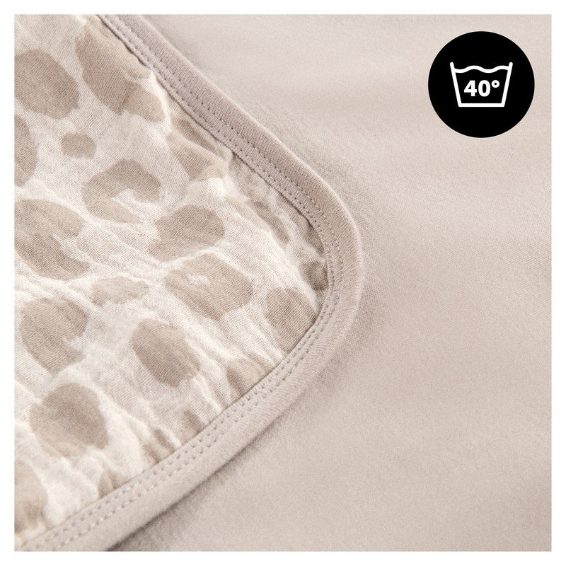 La manta Snuggle N Dream está hecha de un tejido suave de jersey de algodón de alta calidad. Es transpirable y regula la humedad, calienta y al mismo tiempo previene la acumulación de calor. Una capucha protege contra corrientes de aire.