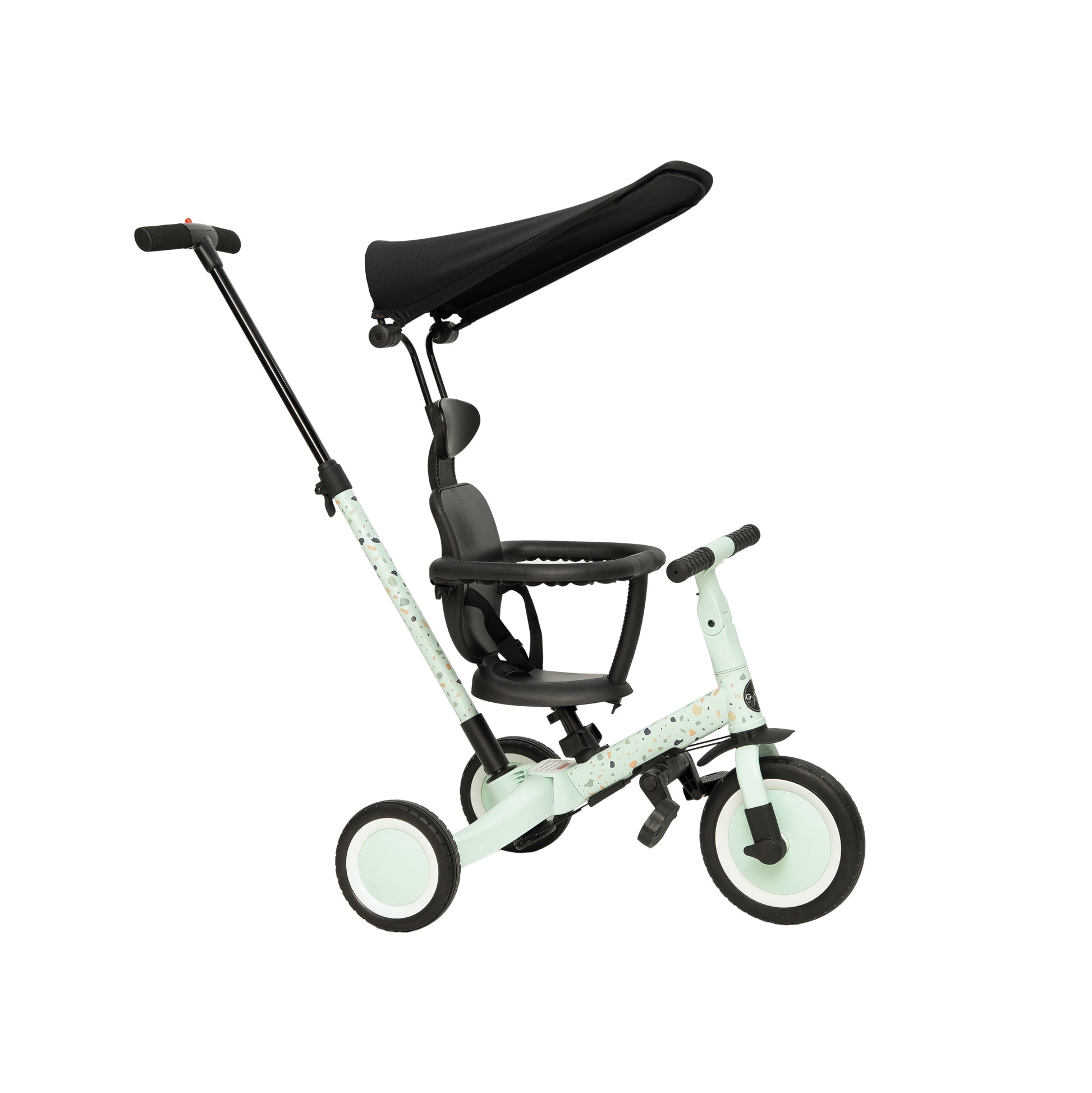 Diseñado para ofrecer la máxima comodidad y seguridad, incluye una práctica capota que protege a los más pequeños del sol para disfrutar de los paseos al aire libre sin preocupaciones. Además, su aro de protección añade una capa extra de seguridad para que el niño esté siempre seguro mientras explora su entorno. Y al igual que su hermano mayor Gyro, se adapta a las diferentes etapas del crecimiento del bebé, permitiendo su uso como triciclo guiado y, posteriormente, como triciclo y bici independiente.