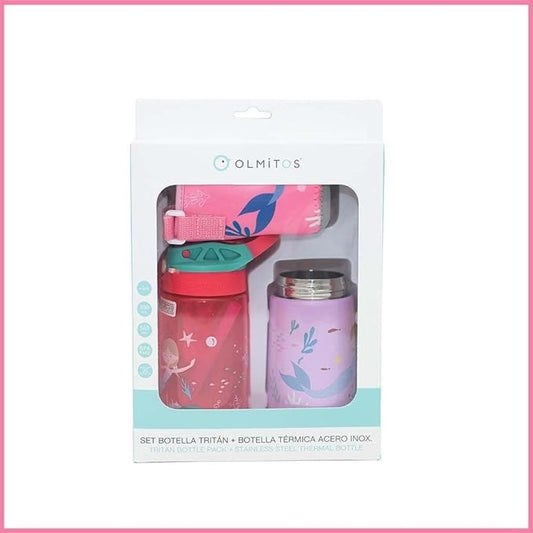 Conjunto Garrafa Olmitos Tritan + Garrafa Térmica em Aço Inox