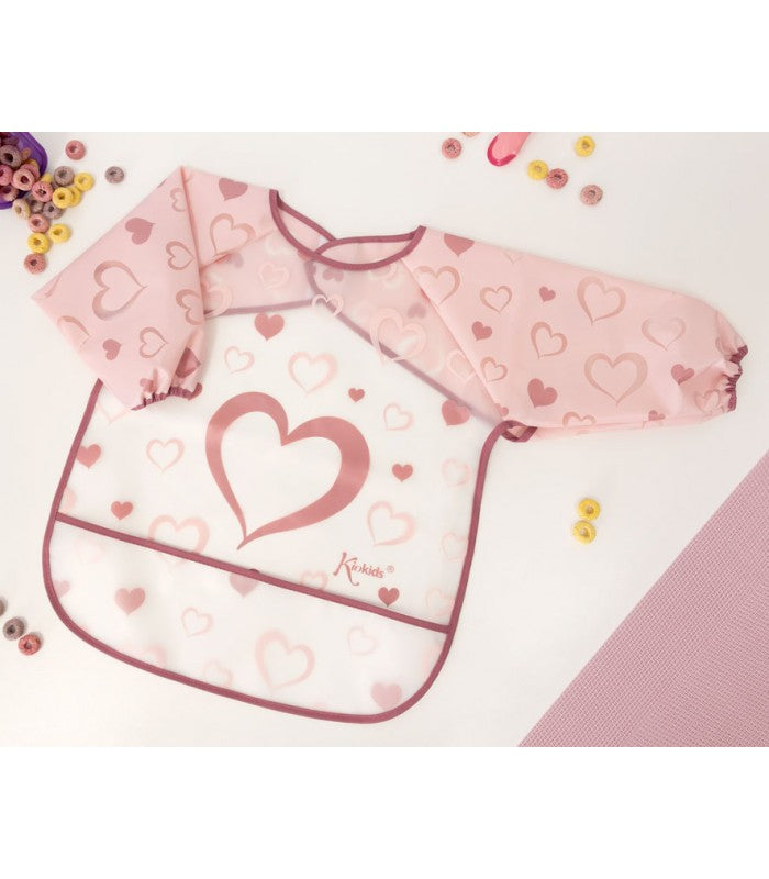 Nosso babador com mangas é feito 100% PEVA, muito macio, confortável e impermeável .