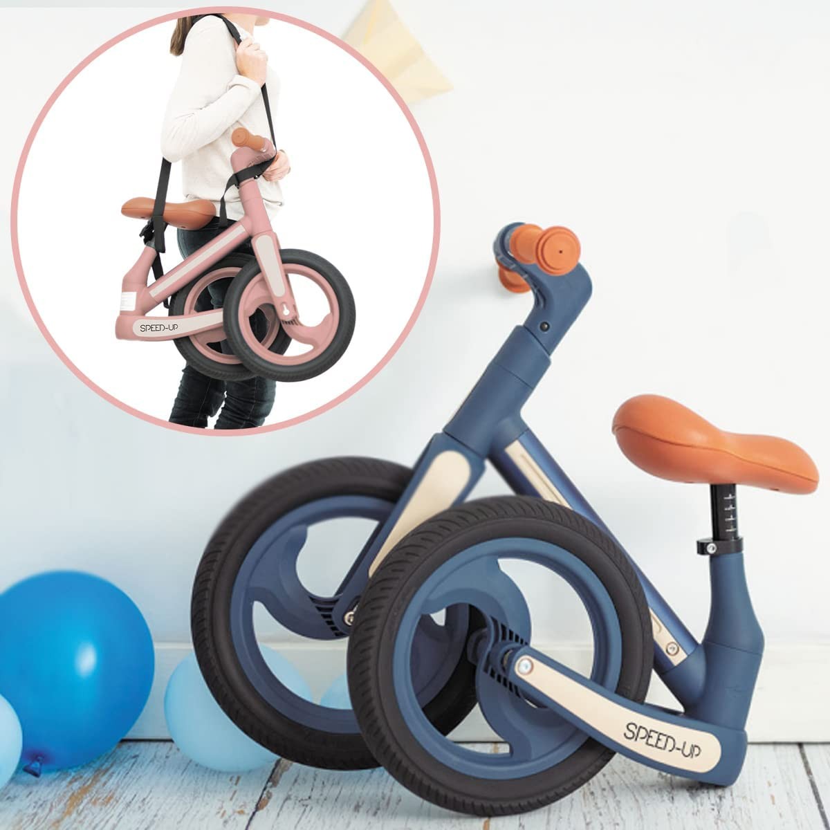 - 🚲 A bicicleta de equilíbrio “SPEED-UP” é a melhor maneira de aprender a andar de bicicleta, desenvolvendo equilíbrio e habilidades motoras enquanto se diverte. Graças à sua estrutura compacta, dobrável e com alça de transporte, ela pode ser levada para qualquer lugar e guardada, ocupando pouquíssimo espaço.