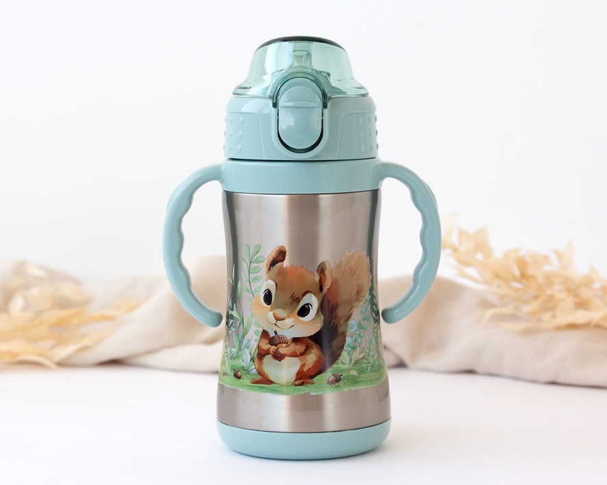 Botella ardilla de acero inoxidable con asas 280ml de Kiokids