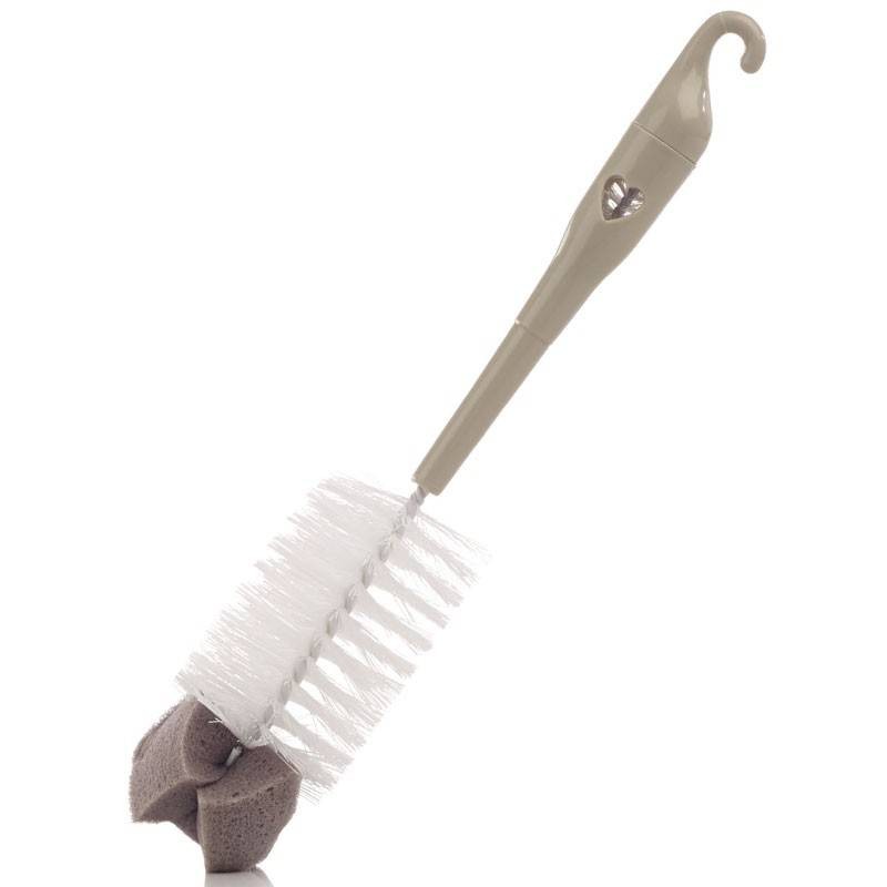 A escova para limpeza de mamadeiras e bicos permite limpar profundamente os acessórios alimentares do seu bebê