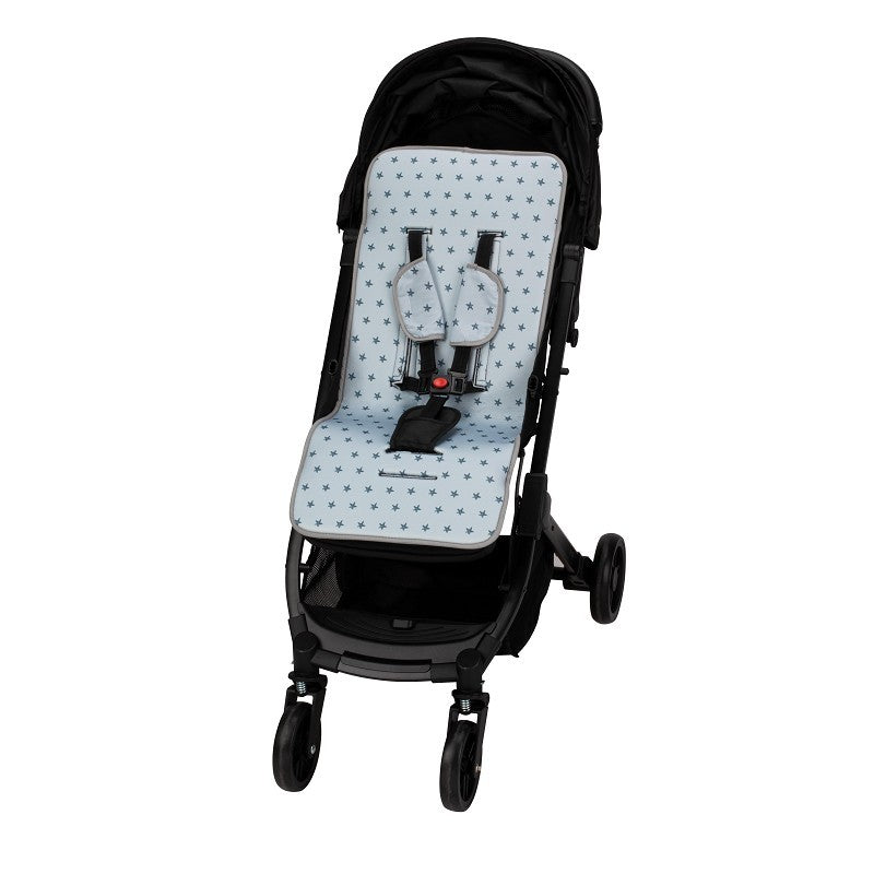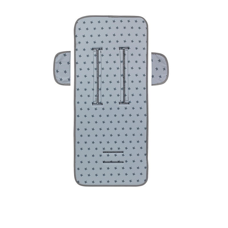 Tapete 3D com forro em tecido 100% respirável, são capas universais para carros válidas para qualquer carrinho. Possuem ilhós para passar os cintos dos ombros, cintura e entrepernas. Nas cores atuais como o modelo ESTRELLAS em 4 cores à escolha: cinza, menta, azul e rosa. Fabricante Interbaby . 83x33cm.