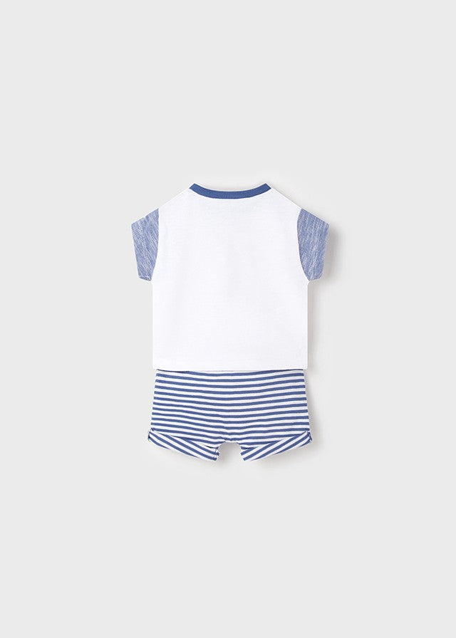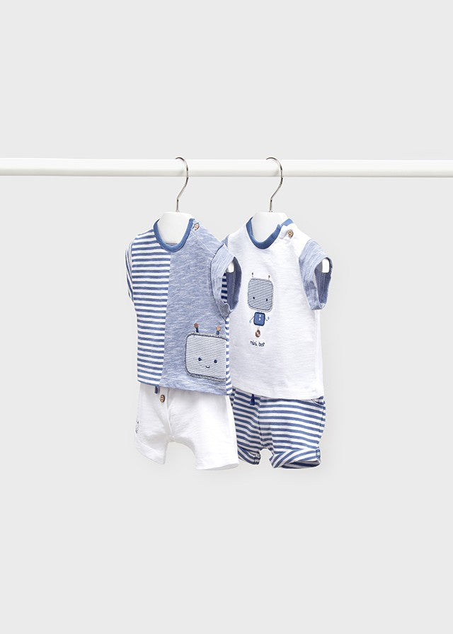 Peça ECOFRIENDS 100% algodão orgânico. Conjunto de duas peças para menino recém-nascido composto por dois conjuntos combináveis de t-shirt de manga curta e calções.