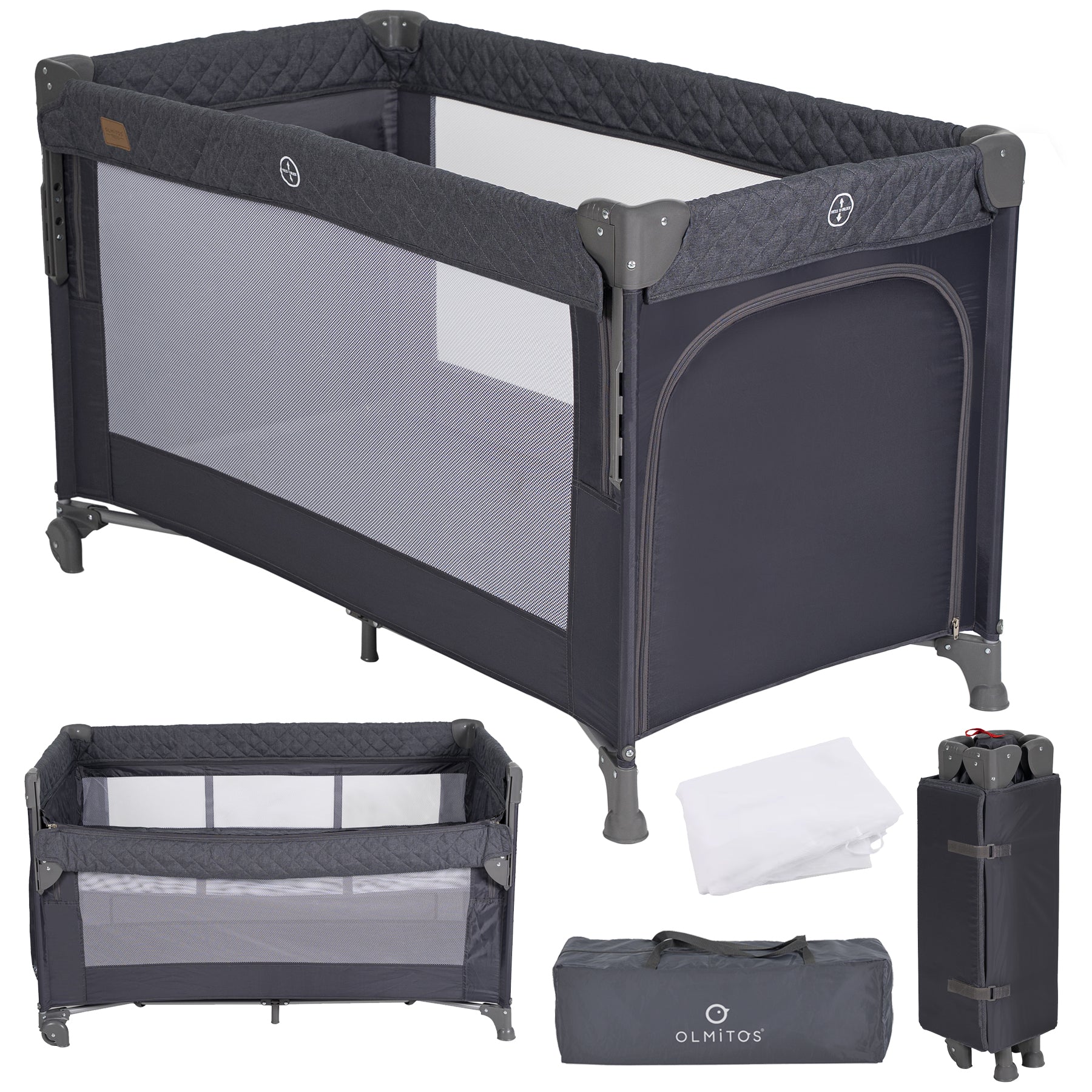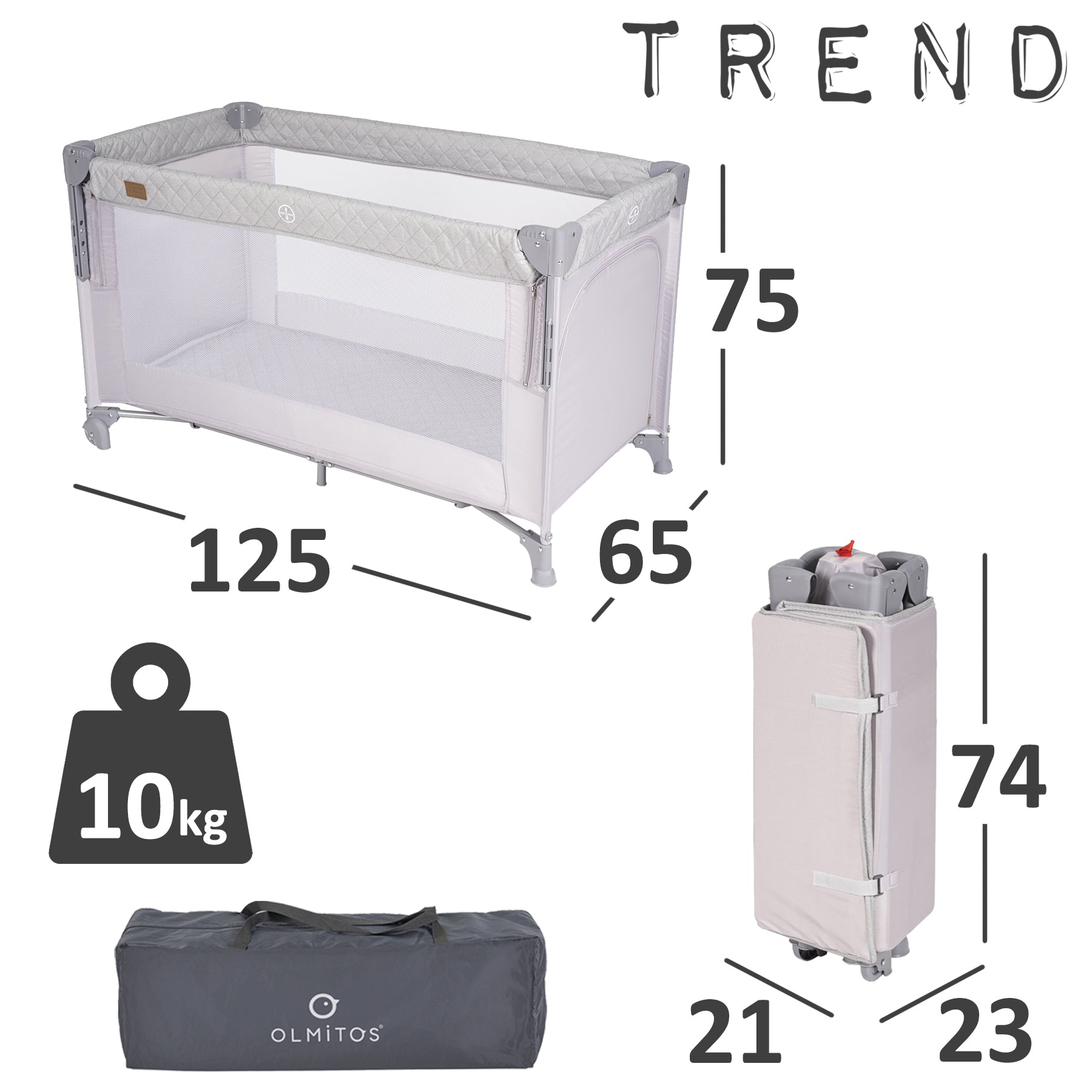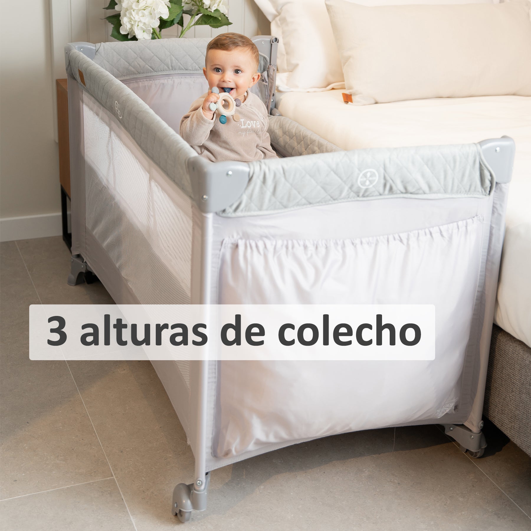 O berço de viagem co-sleeping Olmitos TREND foi projetado pensando no conforto, na segurança e na praticidade que pais e bebês precisam. Perfeito para dormir ao lado do seu filho sem compartilhar a mesma superfície, este berço possui uma lateral dobrável com 3 alturas ajustáveis, facilitando a amamentação e os cuidados noturnos sem perturbar o sono de nenhuma das crianças. Graças à sua estrutura dobrável e leve, você pode levá-lo facilmente em suas viagens. Inclui uma bolsa de transporte compacta e prática.