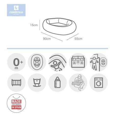 O berço ninho Cambrass é um item multiuso, para poder colocar o bebê dentro de casa nos primeiros meses de vida, sua principal função é proteger o bebê e mantê-lo seguro, pode ser usado na cama dos pais, em o berço, em O mini berço e sua almofada externa podem ser usados como travesseiro de amamentação