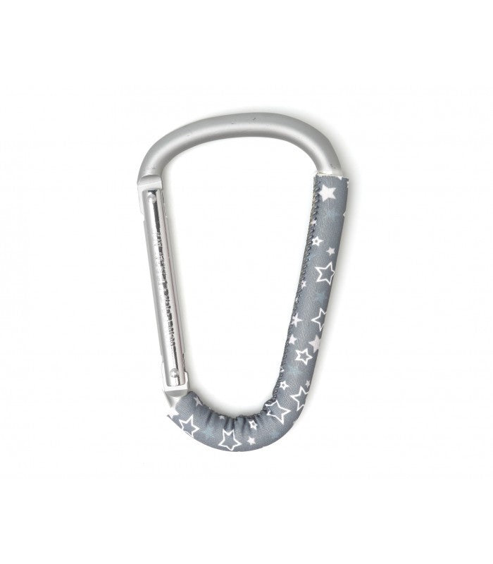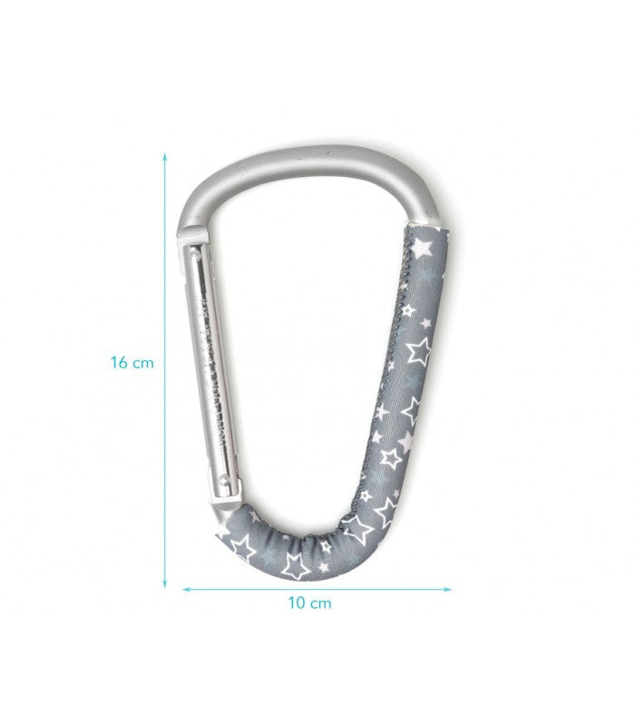 Mosquetão para pendurar no guidão de qualquer carrinho ou cadeira que não caiba na bolsa de maternidade ou que você prefira levar mais perto da mão.