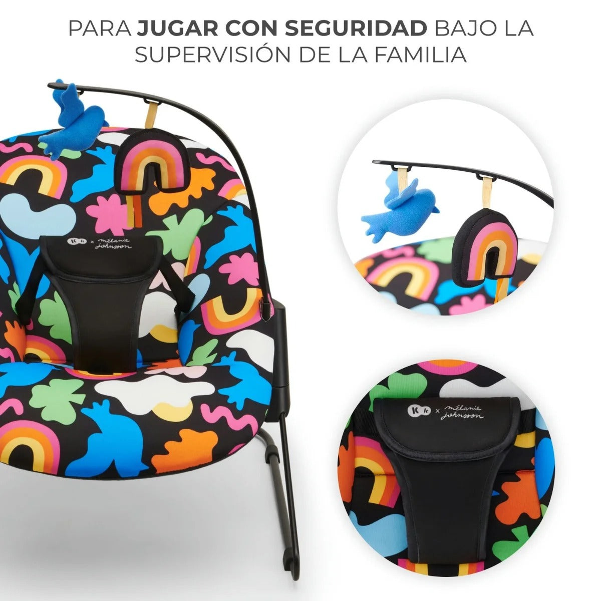 O CALMEE possui um arco com dois brinquedos coloridos que promovem o desenvolvimento da coordenação motora do bebê. Também é equipado com cintos de segurança de 3 pontos fáceis de ajustar. Todas as brincadeiras são seguras com o CALMEE!