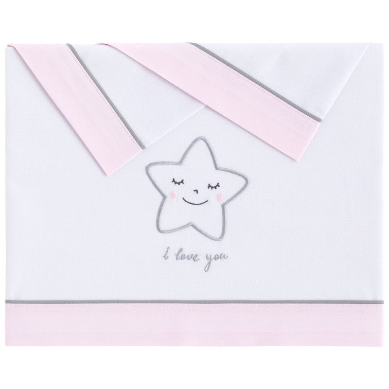 Conjunto de lençóis para bebê feito de algodão macio. Proporciona um toque agradável e proteção para o descanso do seu bebê, evitando que ele sinta frio. Com este conjunto de lençóis, seu berço ficará completamente arrumado. Além disso, com seu design exclusivo, o berço do seu bebê estará sempre na moda.