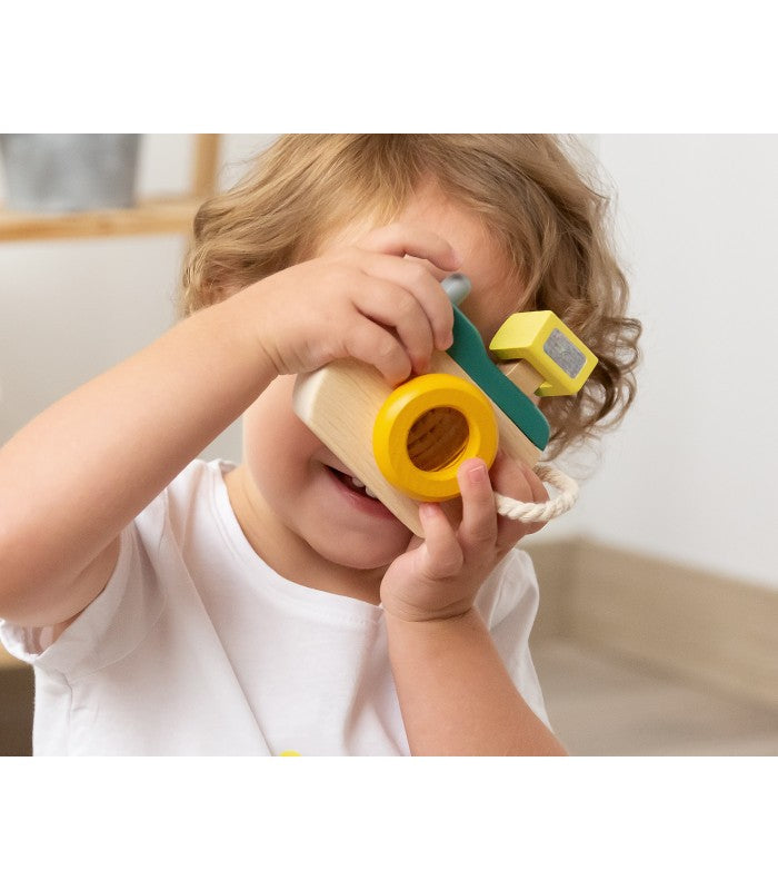 Nossas câmeras são feitas de madeira de faia e são totalmente seguras para o seu filho, pois são pintadas com tinta à base de água.