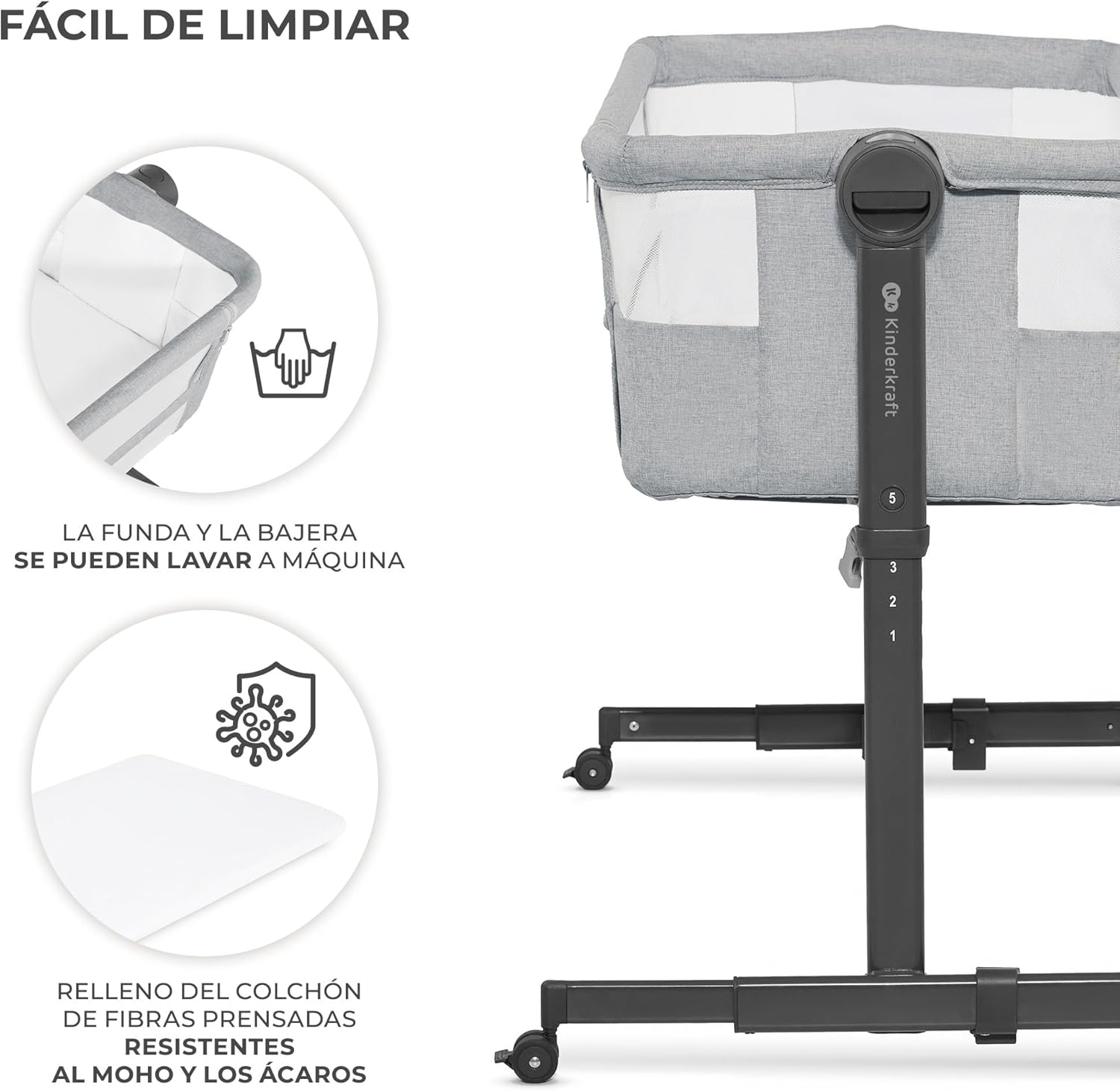 CONFORTÁVEL: O colchão é recomendado por fisioterapeutas (firmeza adequada). O berço co-sleeping NESTE UP 2 permite 5 ajustes de altura. Também é fácil de mover graças às suas 4 rodas com freio e se adapta à altura da cama dos pais (função co-sleeping).